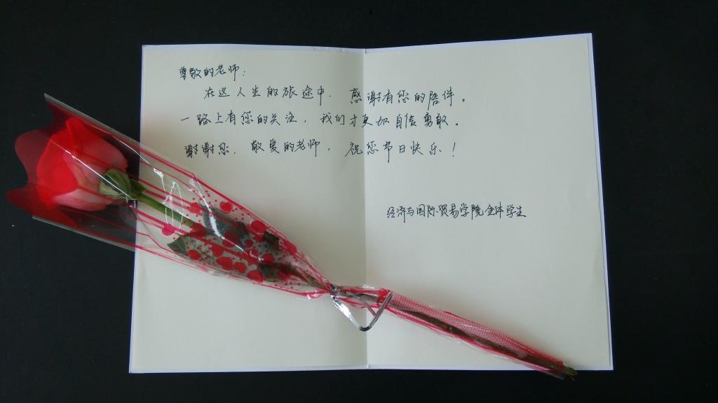 学生代表们还向全院老师献上鲜花和亲手书写的贺卡,表达深深的敬意。