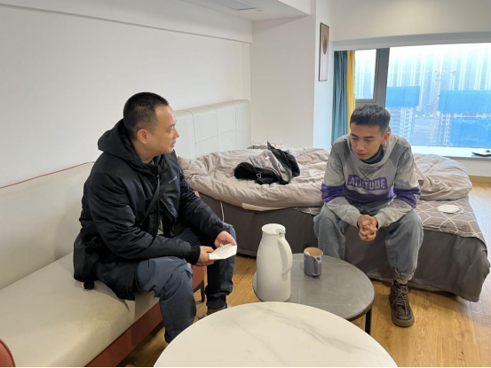 崔泰铭一行先来到海宁市长安镇盈都新天地,看望2020级经济与贸易专业的安卡尔江·艾合麦提,“你在杭州过年,我们代表p站视频
